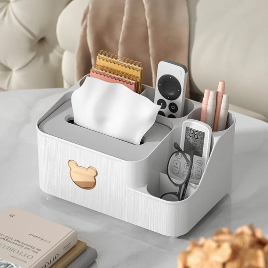 Cartoon Bear Storage Tissue Box – Multi-Functional Cute Organizer with Divided Compartments