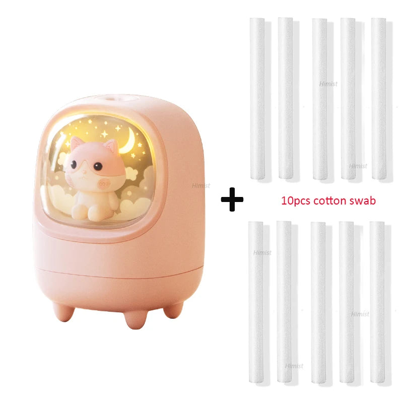 350ml Cartoon Mini Wireless Humidifier & Aromatherapy Mist Diffuser with Moon & Star Night Lamp – USB Rechargeable Portable Air Humidifier for Bedroom, Office, and Car